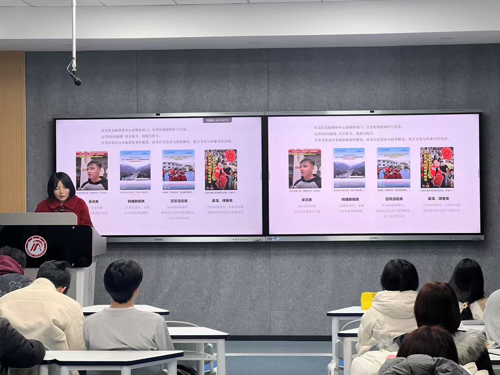 实习生代表经验分享环节成为本次汇报会的亮点。来自岚皋县融媒体中心的实习生杜莹莹结合自身实习经历,深情分享了实习过程中的感悟与收获,讲述了从校园理论学习到职场实践历练的蜕变历程,字里行间满是对实习经历的珍视。同来自岚皋县融媒体中心的翟钰莹则聚焦实操层面,详细分享了不同类型报道的策划、制作与发布流程,深入拆解了采访沟通中的技巧与心得,为在场同学提供了可借鉴的实战经验。安康市融媒体中心实习生乌若璞围绕自身实习工作内容,系统梳理了实践中的工作重点与成长亮点,展现了网媒学子扎实的专业素养。