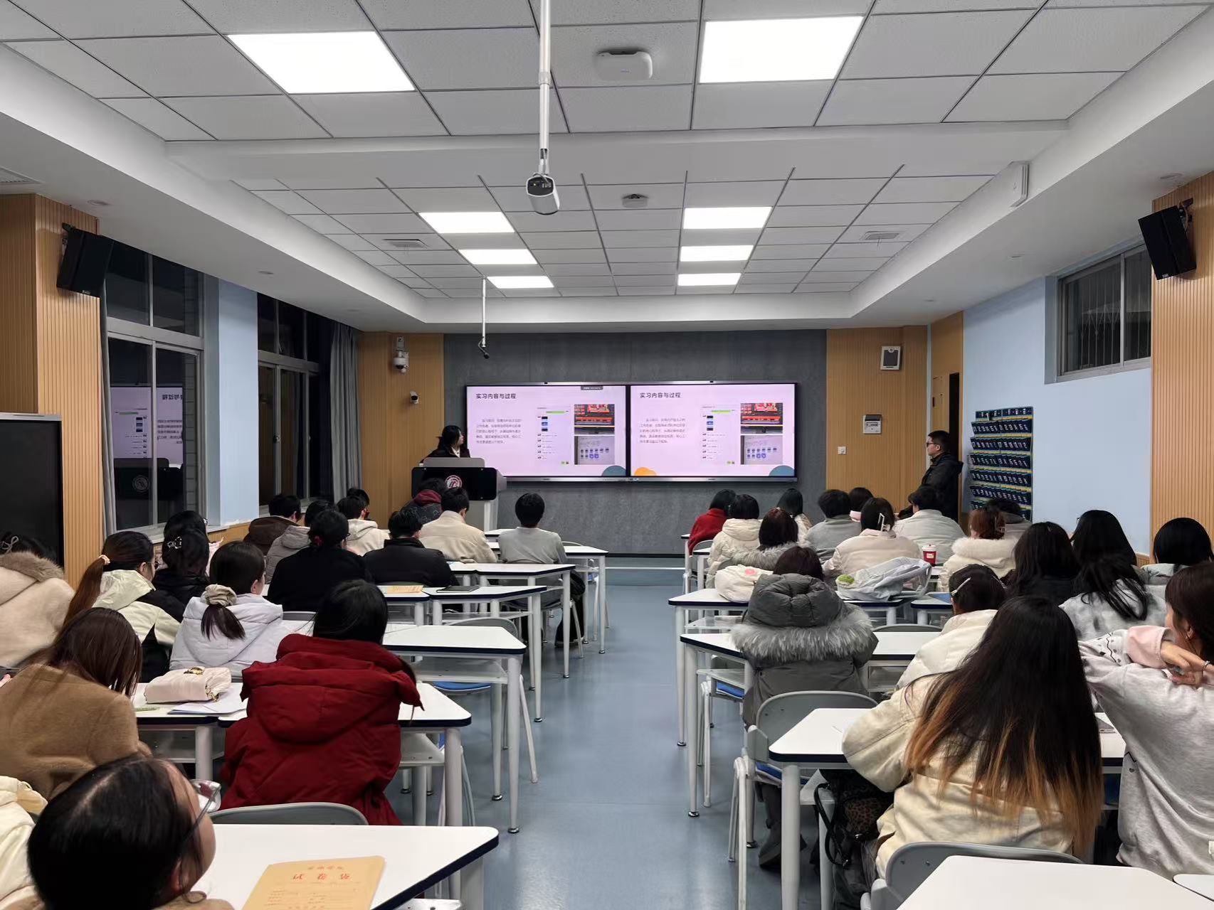 汇报会紧扣“总结实践、交流经验、共促提升”的核心主题,分四个环节有序推进。会议伊始,张建涛详细介绍了本次实习的整体工作情况。据悉,本次实习共有52名学生参与,其中2名学生因特殊情况申请缓修,4名学生采取分散实习模式,其余学生均统一分配至各合作实习点开展实践,实习安排科学合理,覆盖多元实践场景,为学生搭建了优质的实战平台。