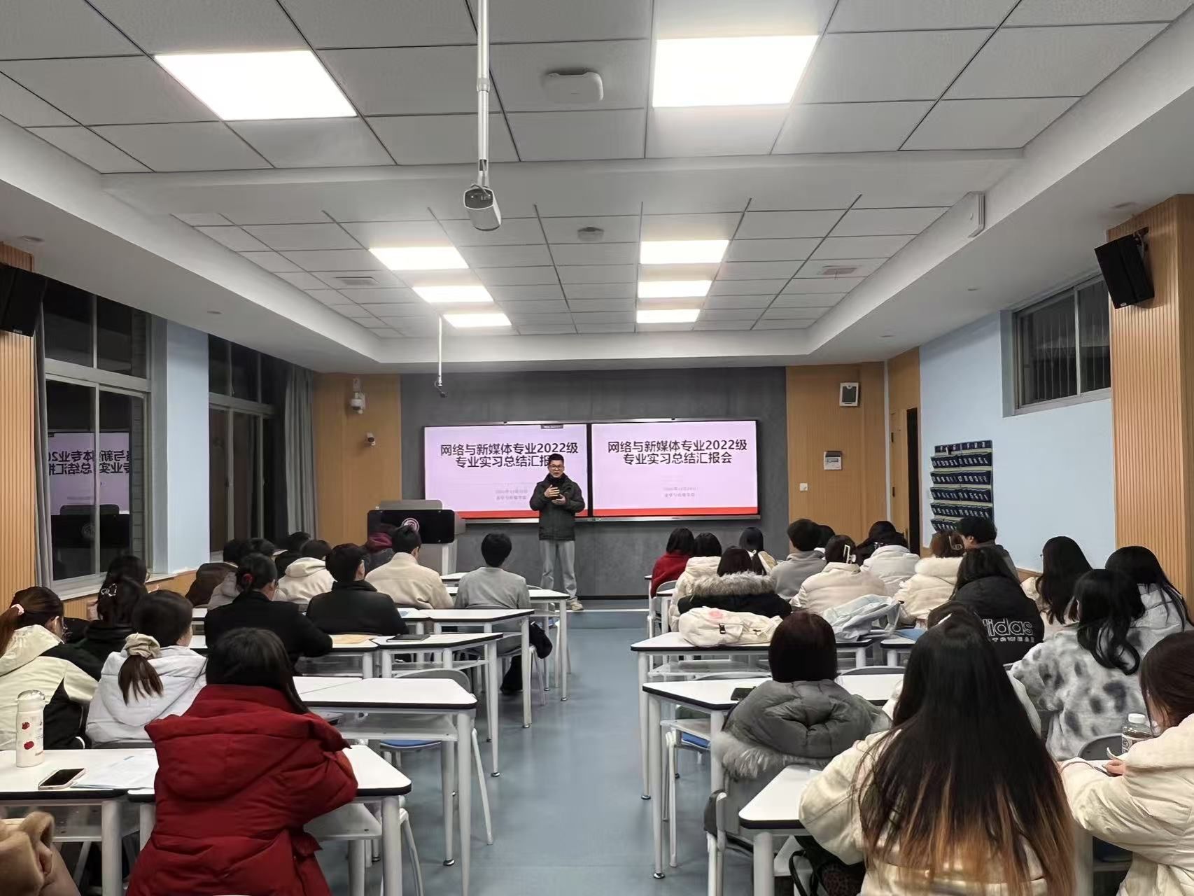 为全面总结实习成果,凝练实践经验,深化产教融合育人成效,2025年12月29日晚,网络与新媒体专业2022级实习总结汇报会在1205教室顺利召开。本次会议由专业实习负责人张建涛主持,2022级全体实习生参会,共同回顾实习历程,分享成长感悟。