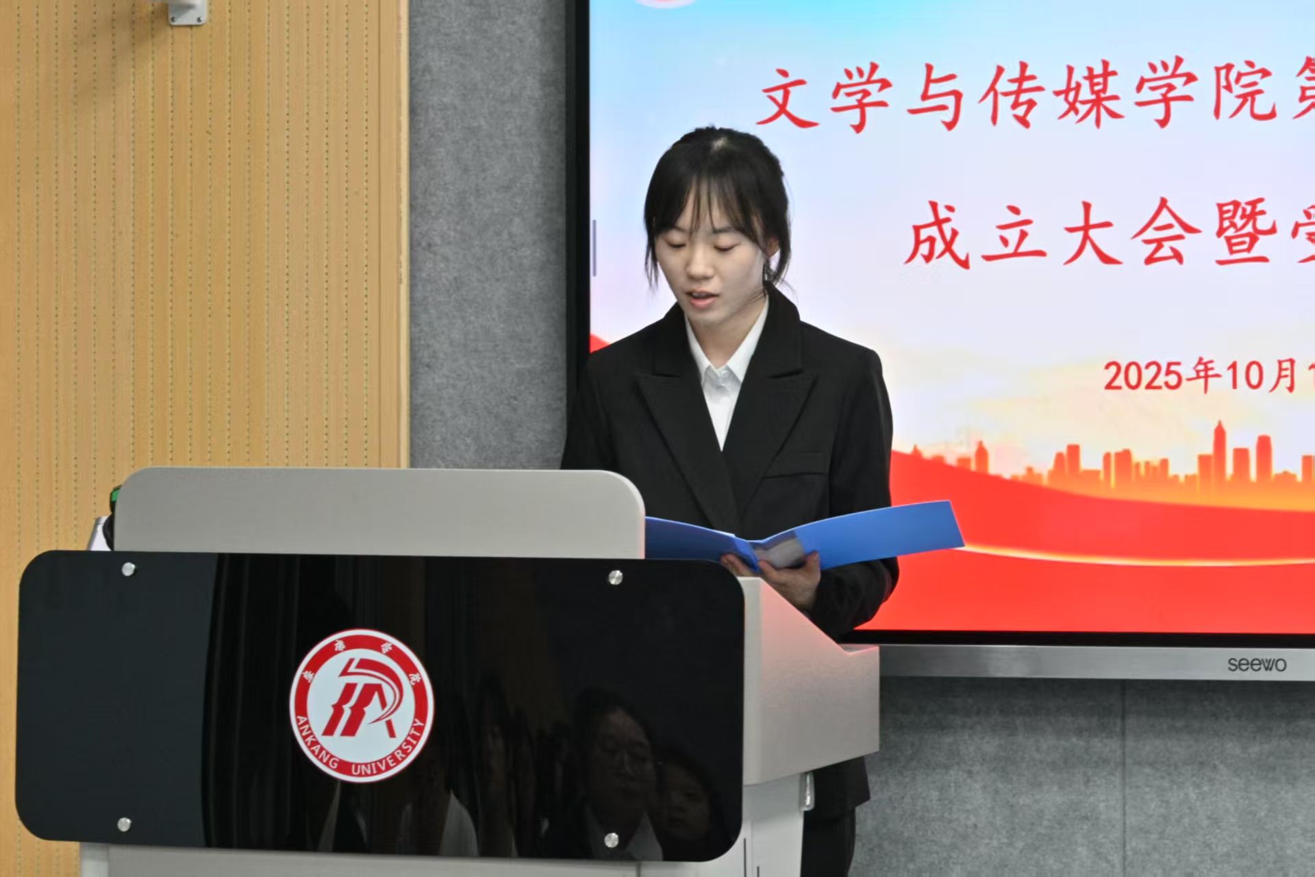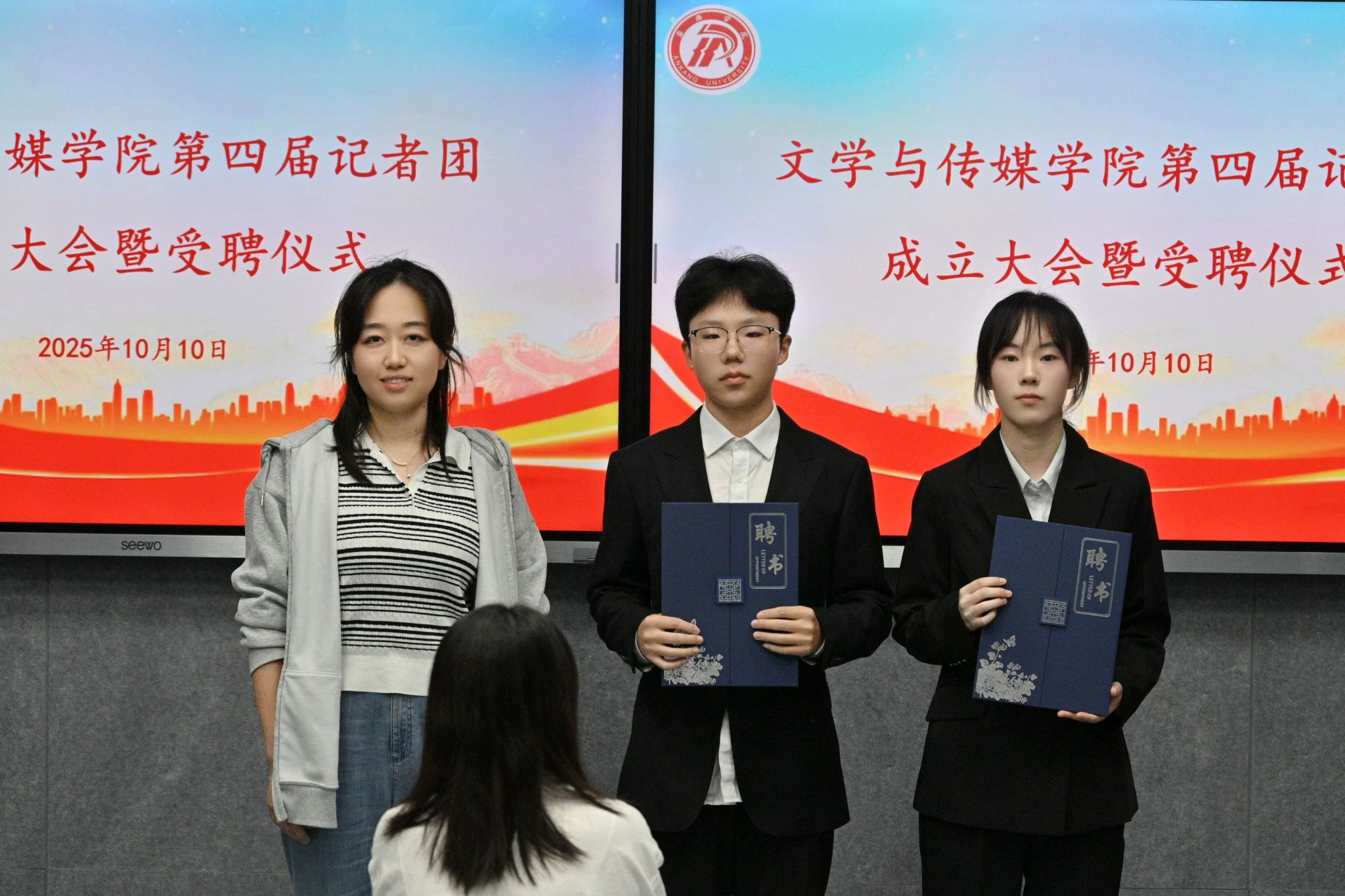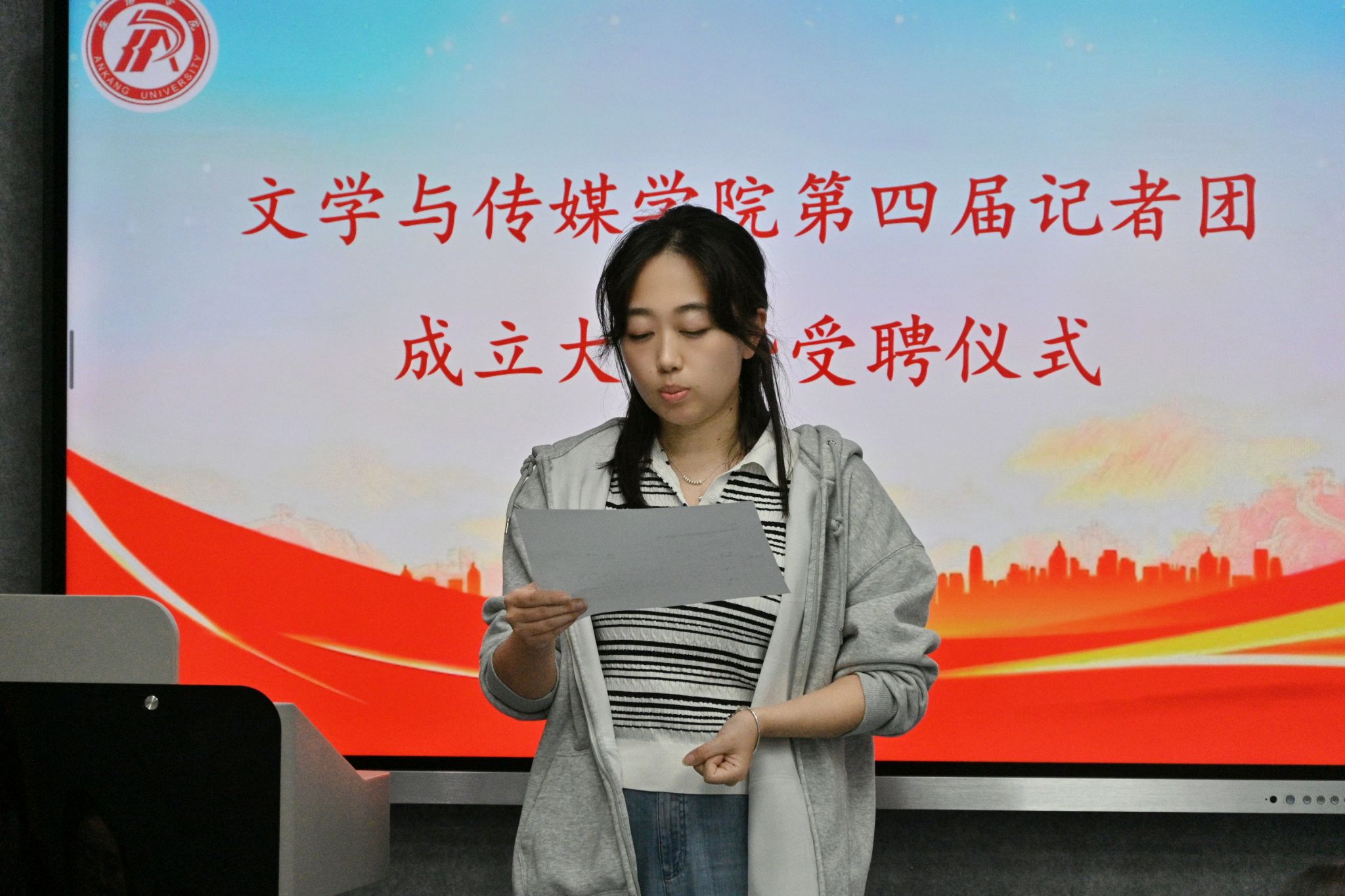10月10日晚7时,文学与传媒学院在1205教室举行第四届记者团成立大会暨受聘仪式。团总支书记彭潇,辅导员刘言军、喻言,学生会主席团成员及社团全体成员参会,仪式由汉语言文学2023级3班杜宇飞主持。