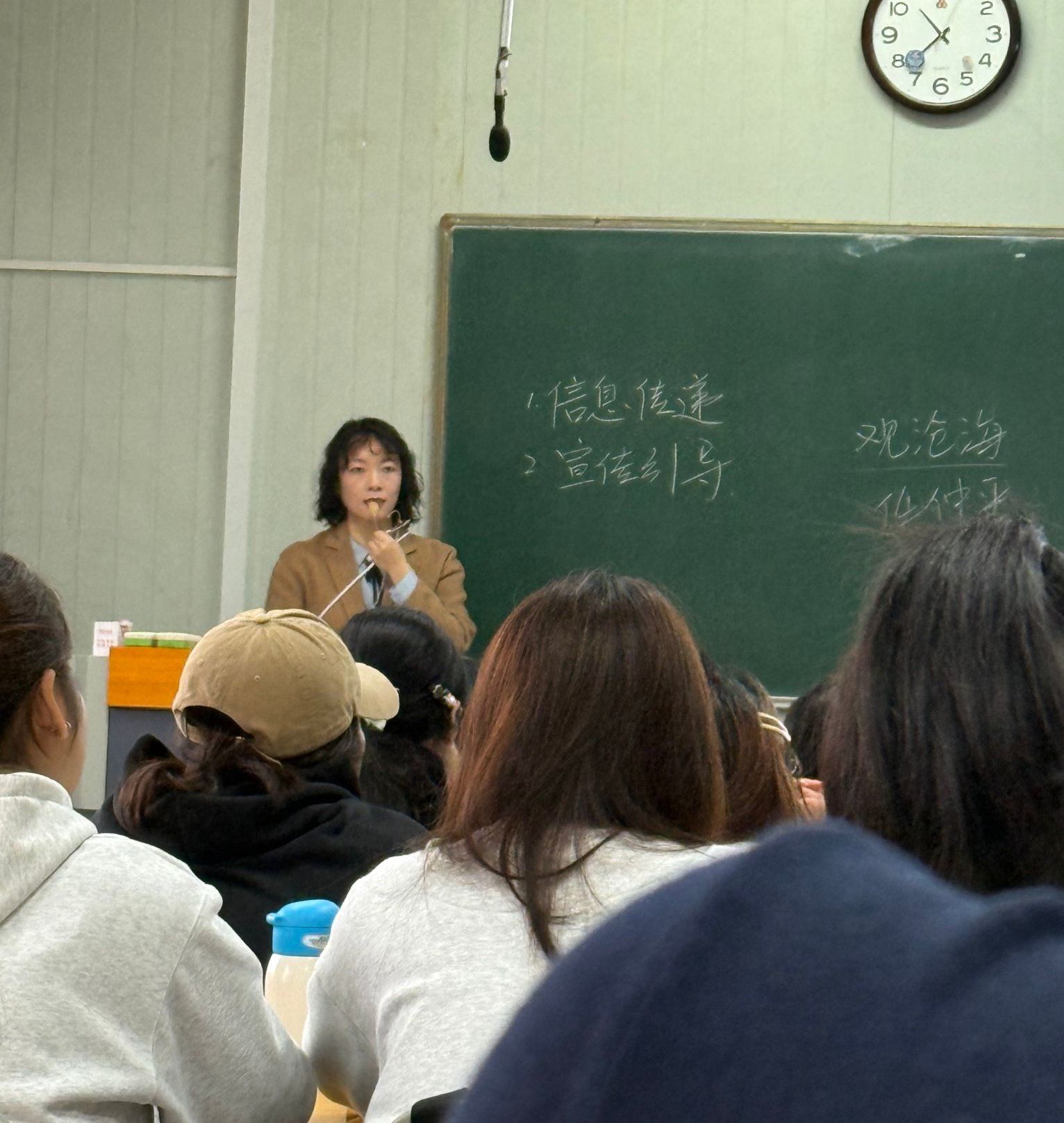 活动第一环节是教学示范课观摩。教师们在1024教室观摩了崔瑜老师主讲的“新闻学概论”课程。崔瑜老师主讲的新闻学概论课程为我校课程思政示范课建设立项课程,崔老师运用超星智慧教学APP,结合课前学生在线自学情况,课上完成了“新闻事业的一般功能”的讲授。教学过程环节完整合理、知识容量大、案例丰富,学生参与度高,教学效果好。