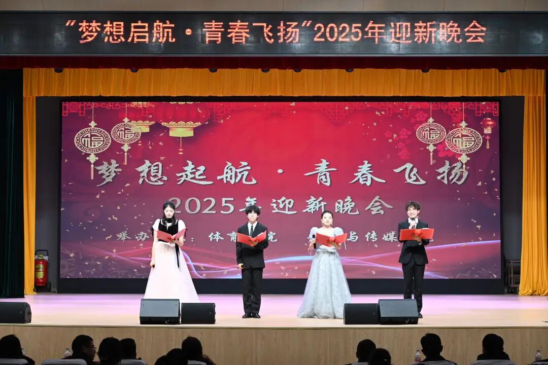 12月14日晚,文传学院与体育学院联合举办的“梦想起航·青春飞扬”迎新晚会在江南校区大礼堂隆重举行。学校组织部、学工部、团委等部门负责人应邀观看晚会,与文传学院、体育学院师生共赴这场青春盛宴。