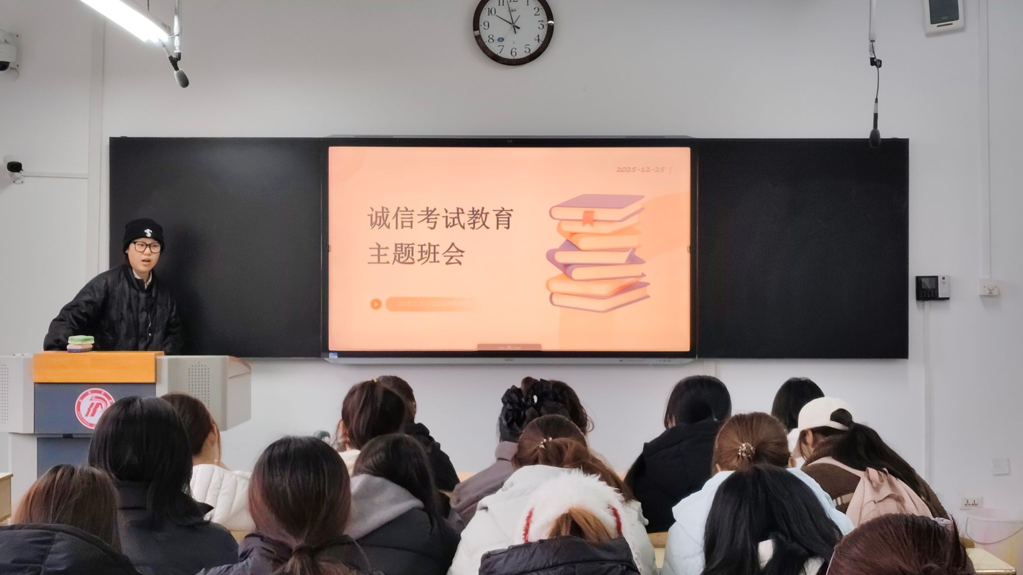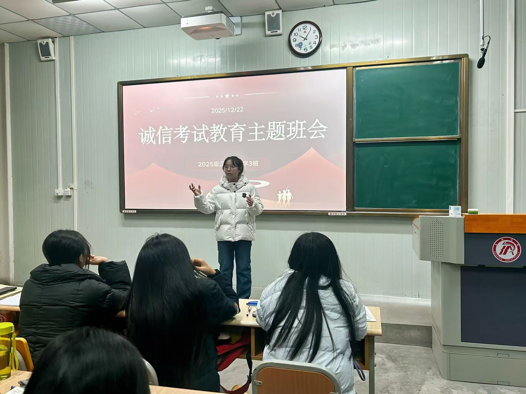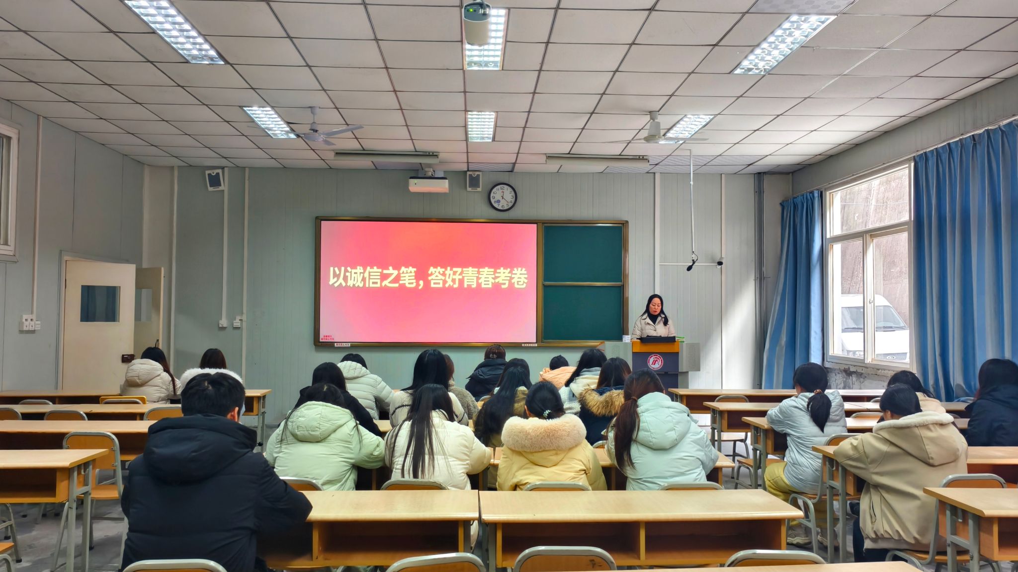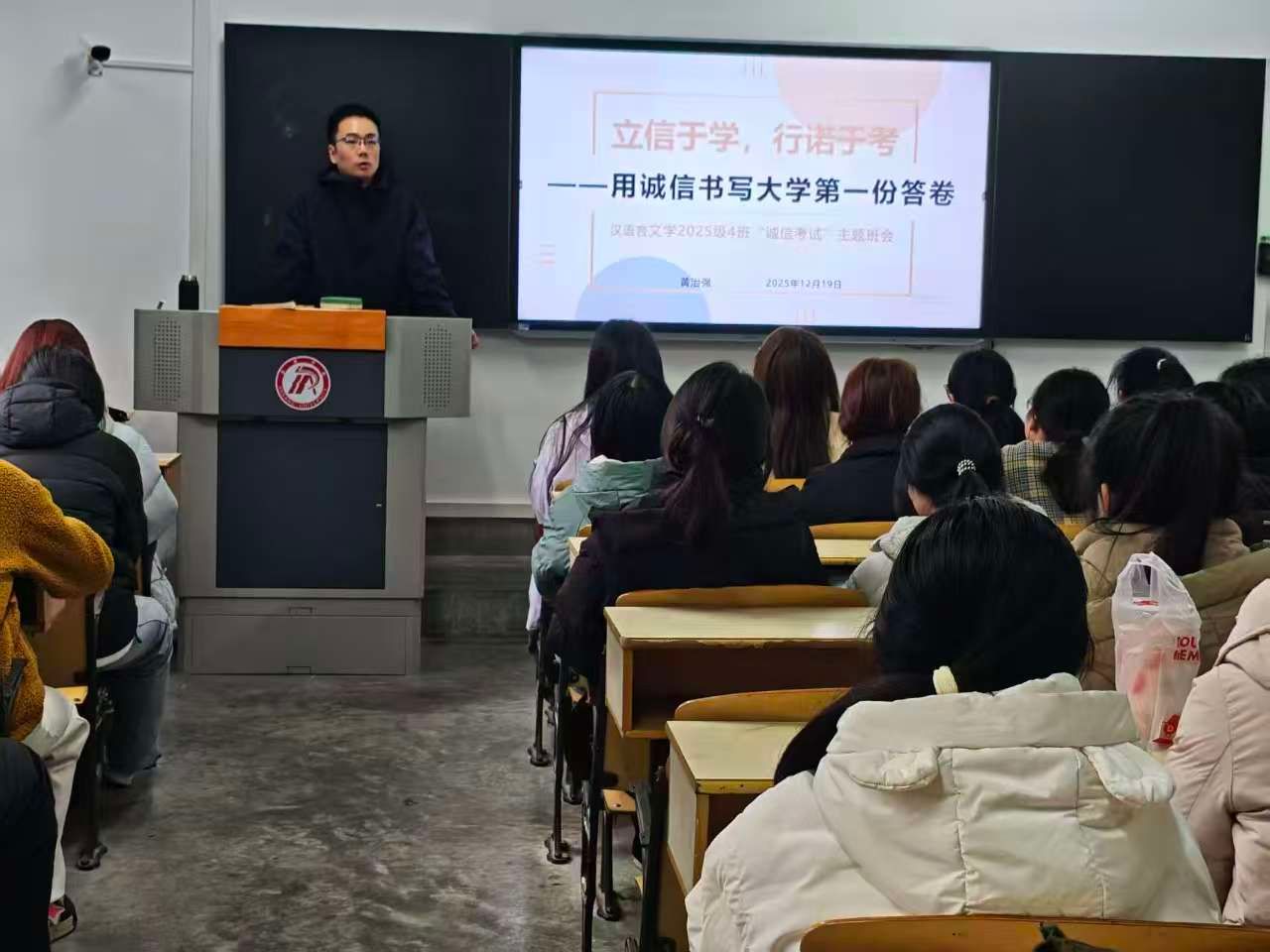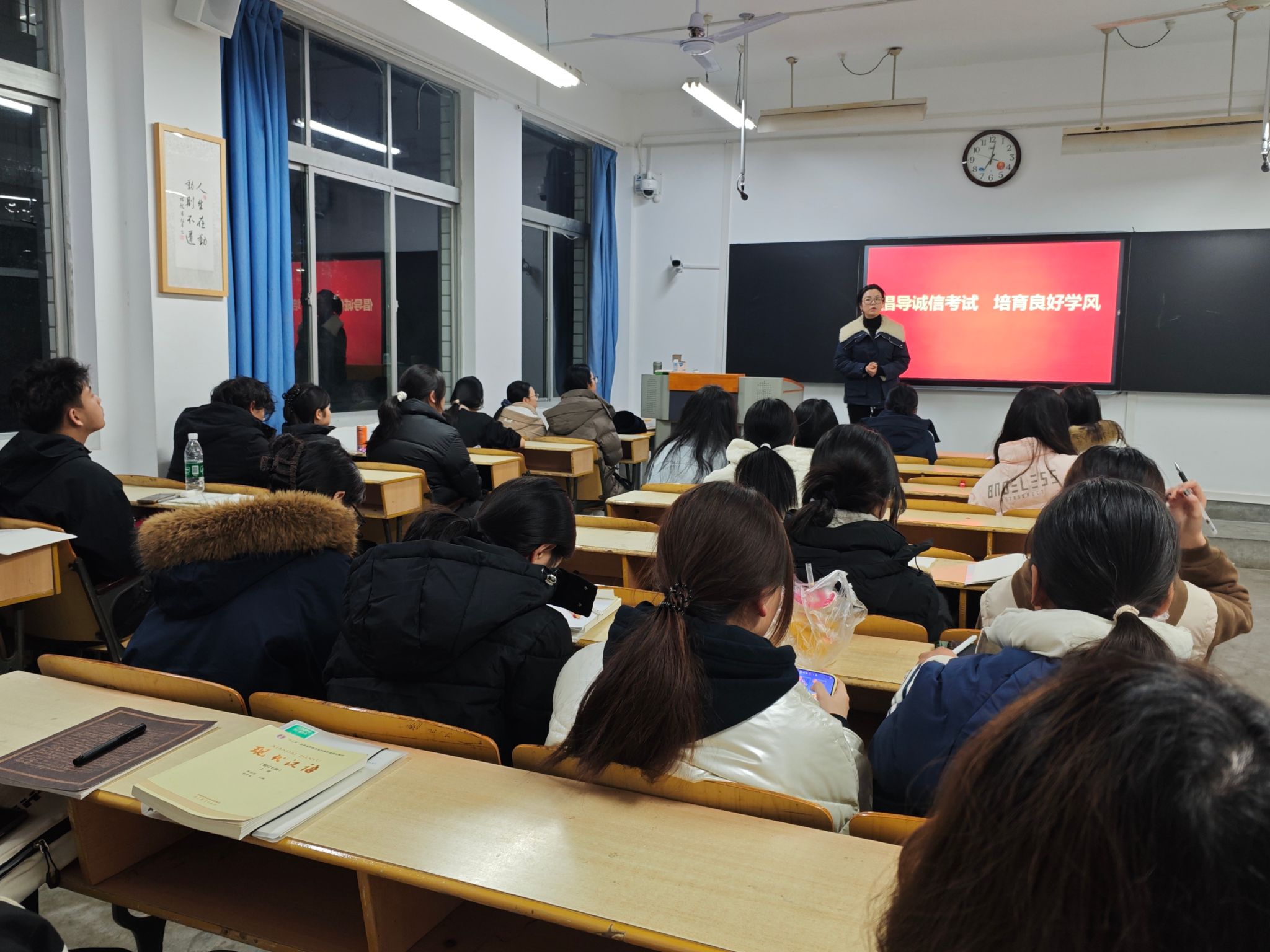 班会上,辅导员和班主任带领同学们集中学习了《安康学院学生手册》《安康学院学士学位授予条例(修订)》等相关管理规定,重点解读了考试违纪行为的认定标准及相应处理办法,强调诚信应考是学生基本行为规范,也是立身立学的重要准则。通过典型案例分析,引导学生深刻认识考试作弊的危害,牢固树立“诚信为本、守纪为荣”的意识。