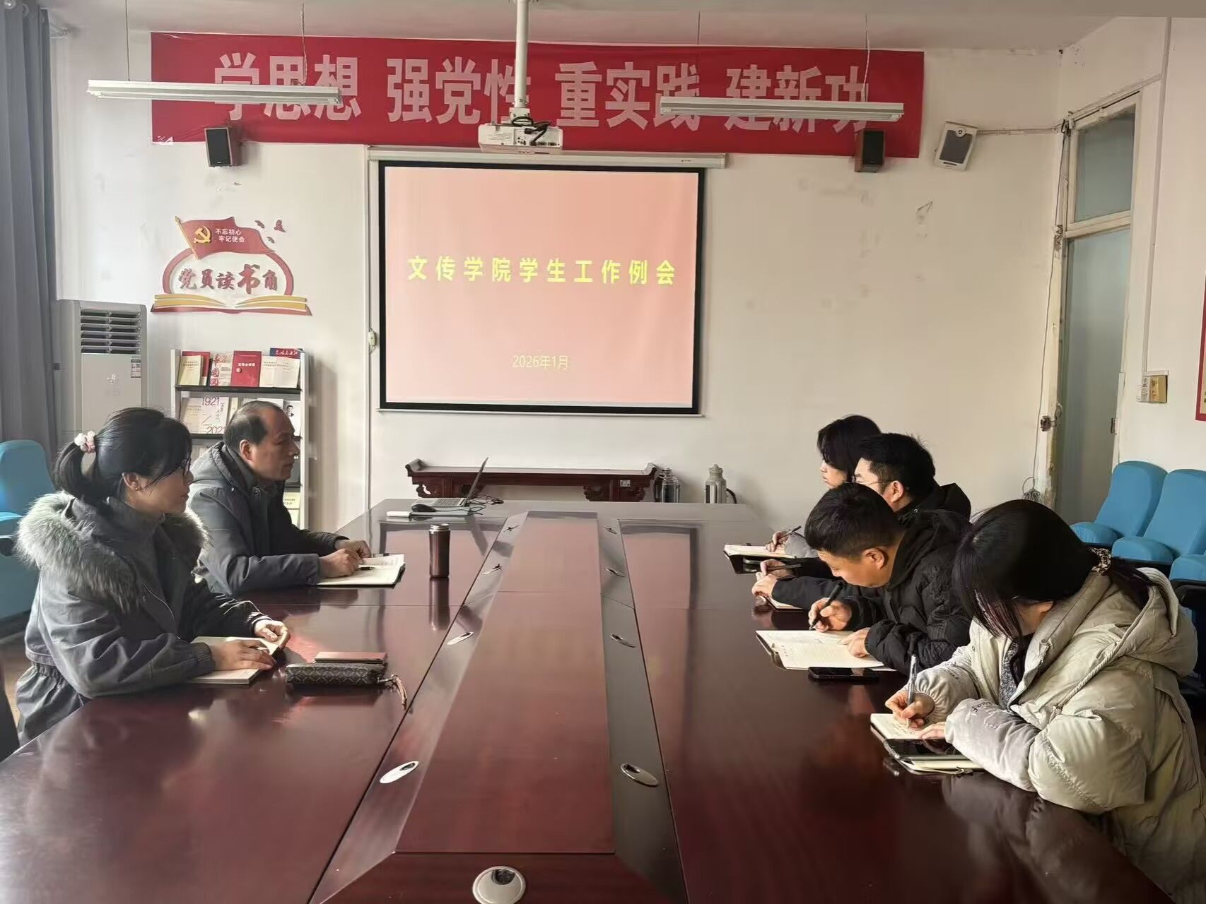 为切实做好寒假期间学生安全稳定工作,1月14日下午,文传学院在2307会议室组织召开学生工作例会暨安全稳定专题会。学院全体学工人员参加会议,会议由党总支书记任森龙主持。