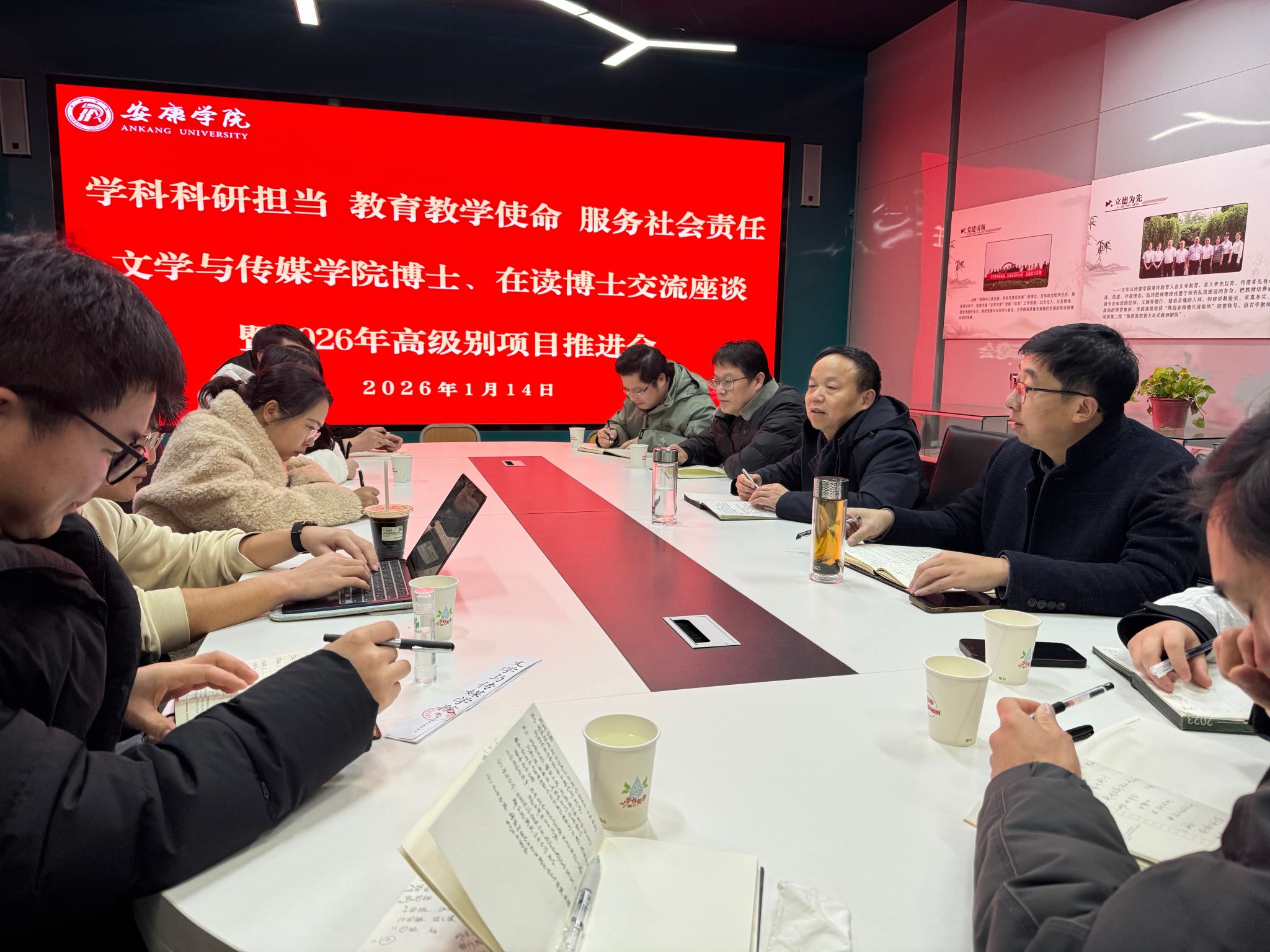 为了充分发挥高层次人才在学科建设、科学研究、教育教学及社会服务中的引领作用,凝聚智慧力量,共商学院高质量发展大计。1月14日,文学与传媒学院召开以“学科科研担当 教育教学使命 服务社会责任”为主题的博士及在读博士座谈暨高级别项目申报工作推进会。学院班子相关成员、全体博士及在读博士教师参加会议,会议由院长杨运庚主持。