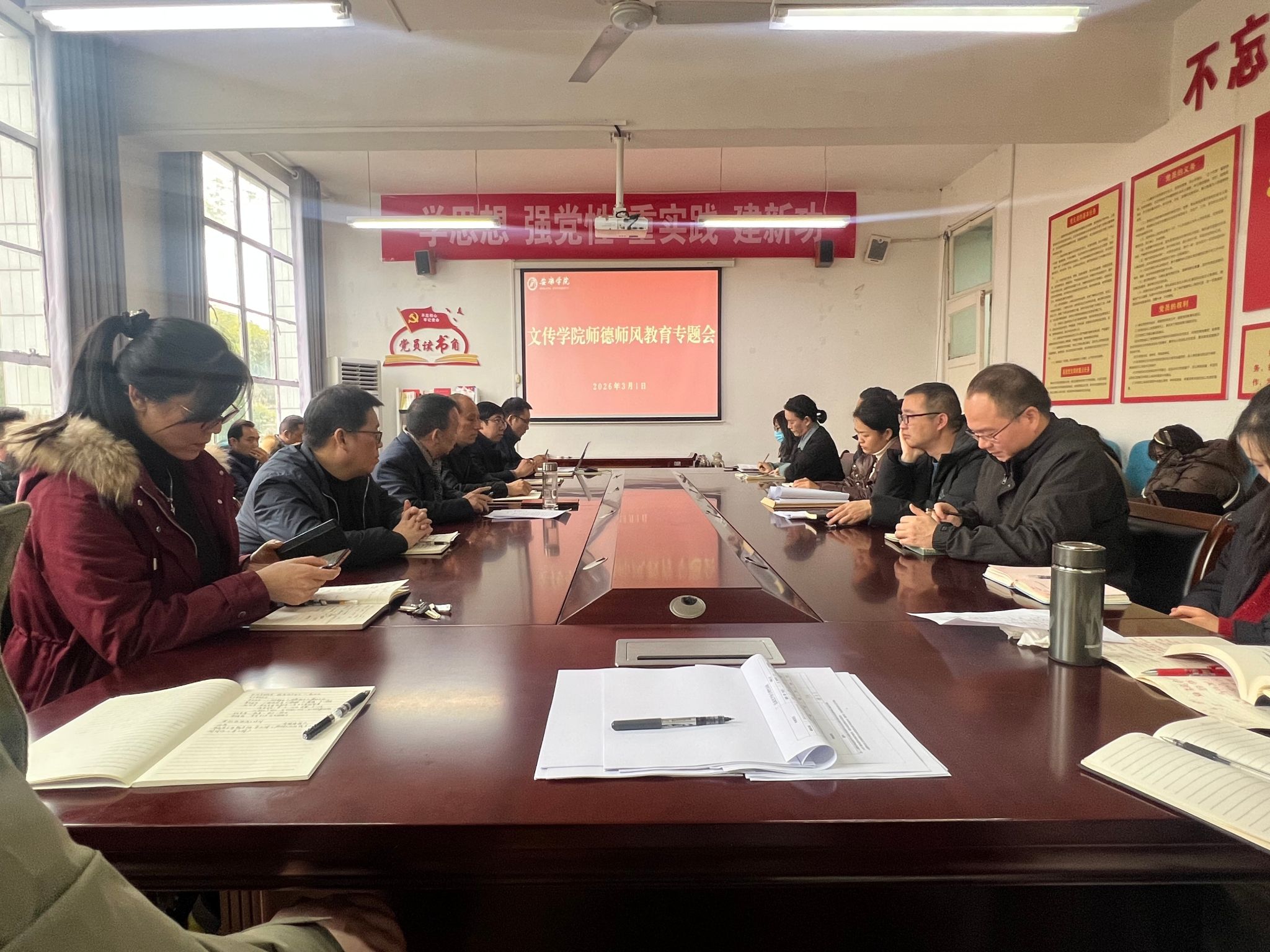 3月1日,文传学院在2307会议室召开师德师风专题学习教育会议,学院全体教师参会,会议由院长杨运庚主持。